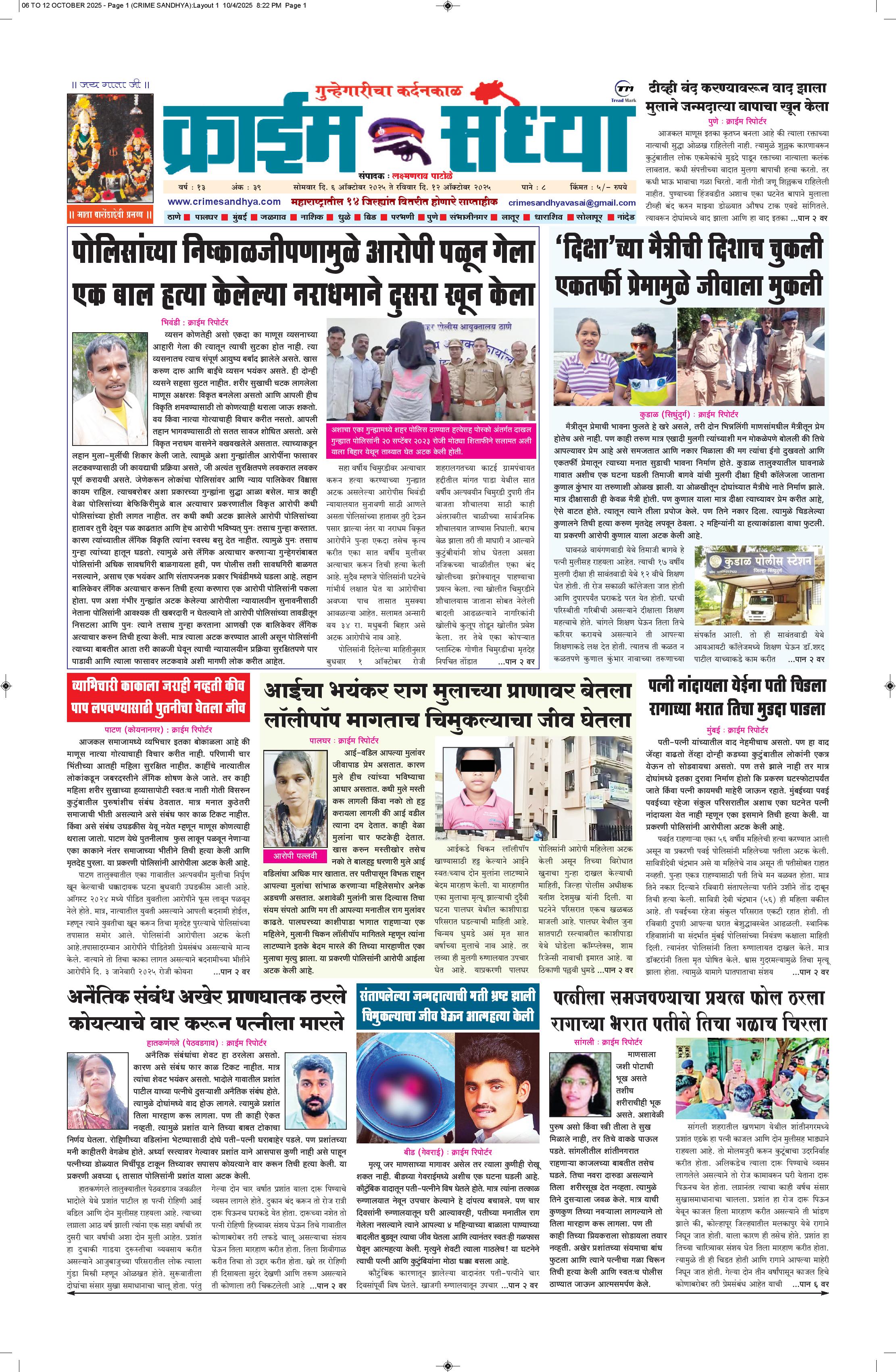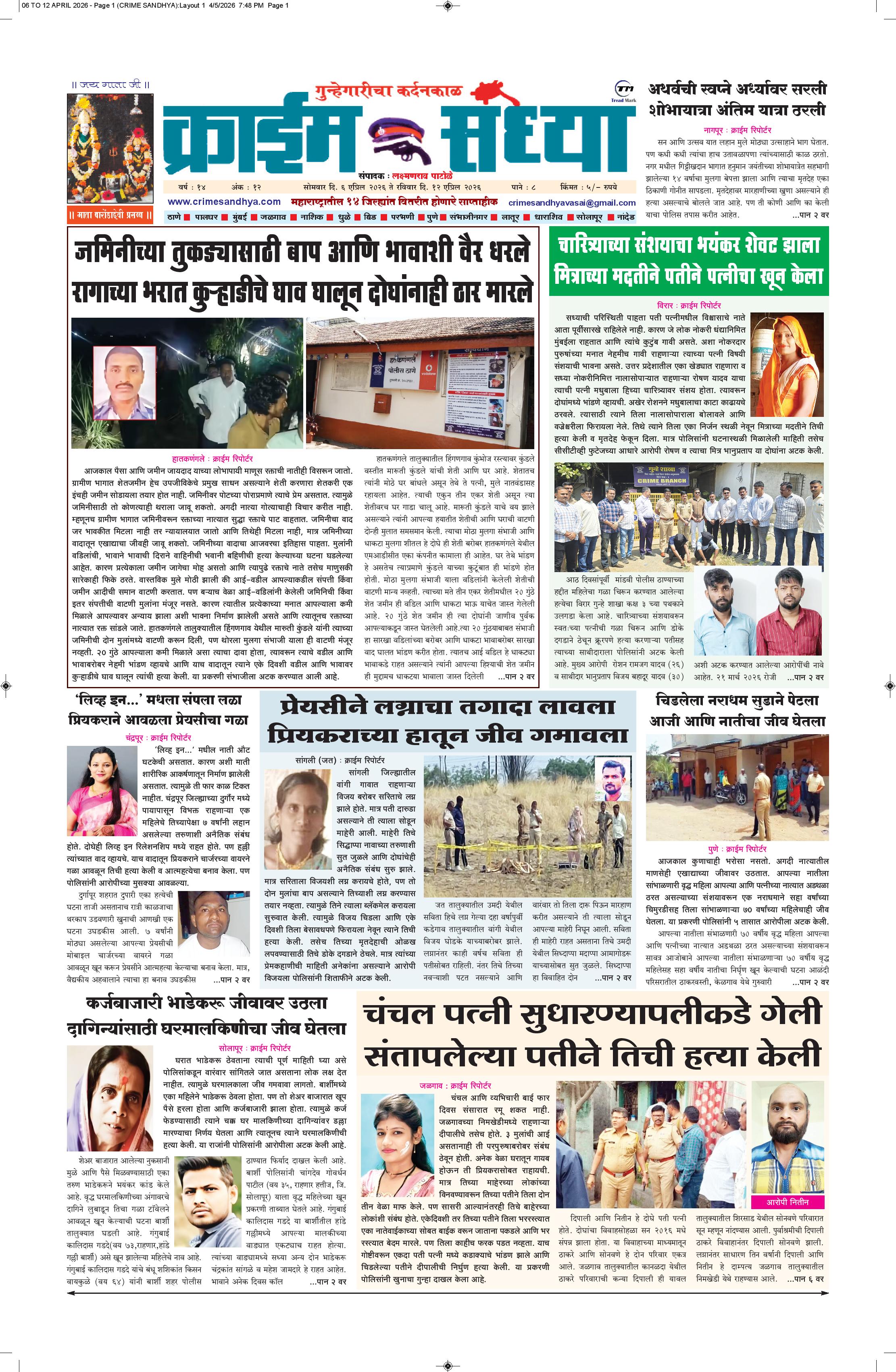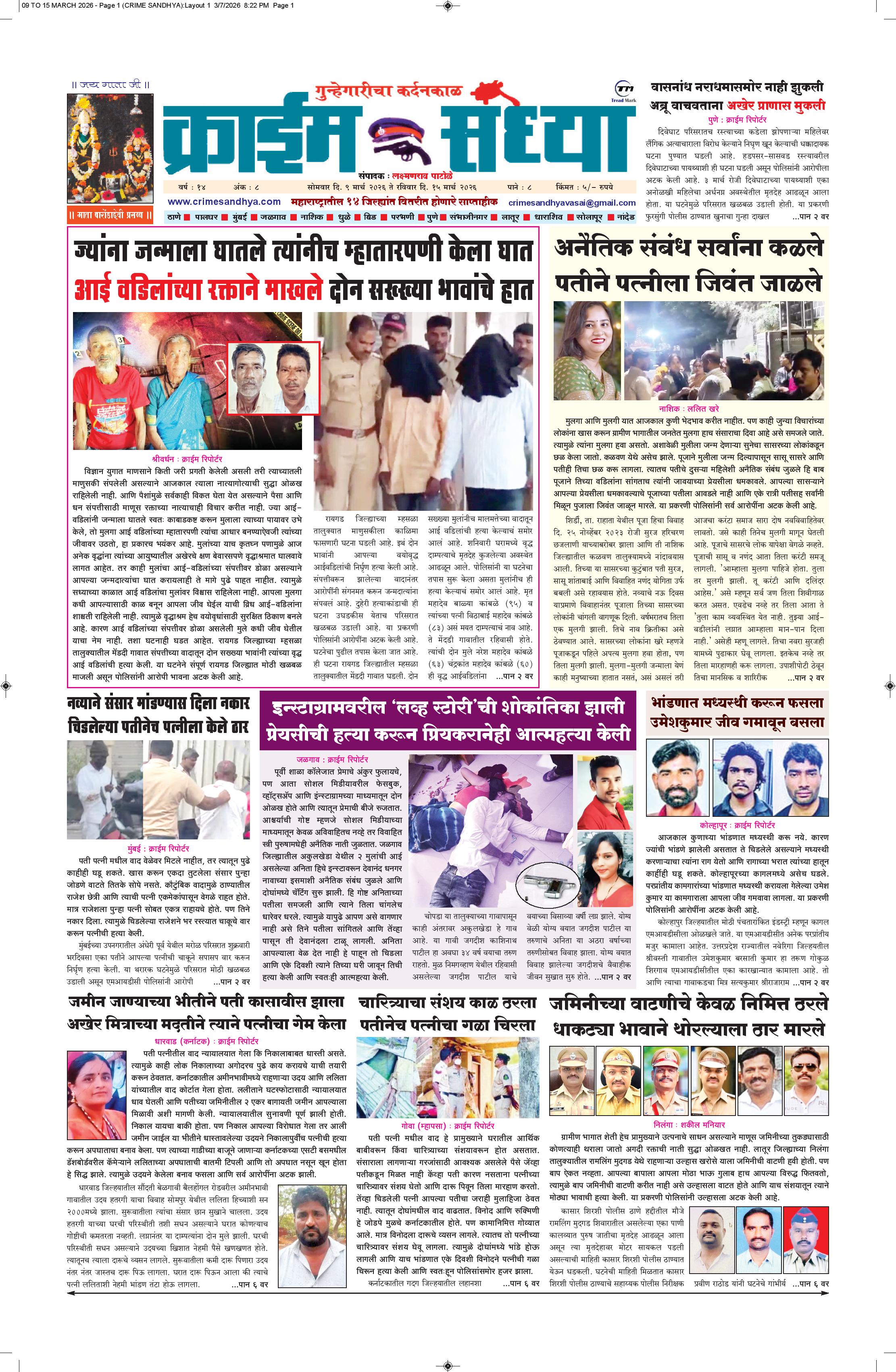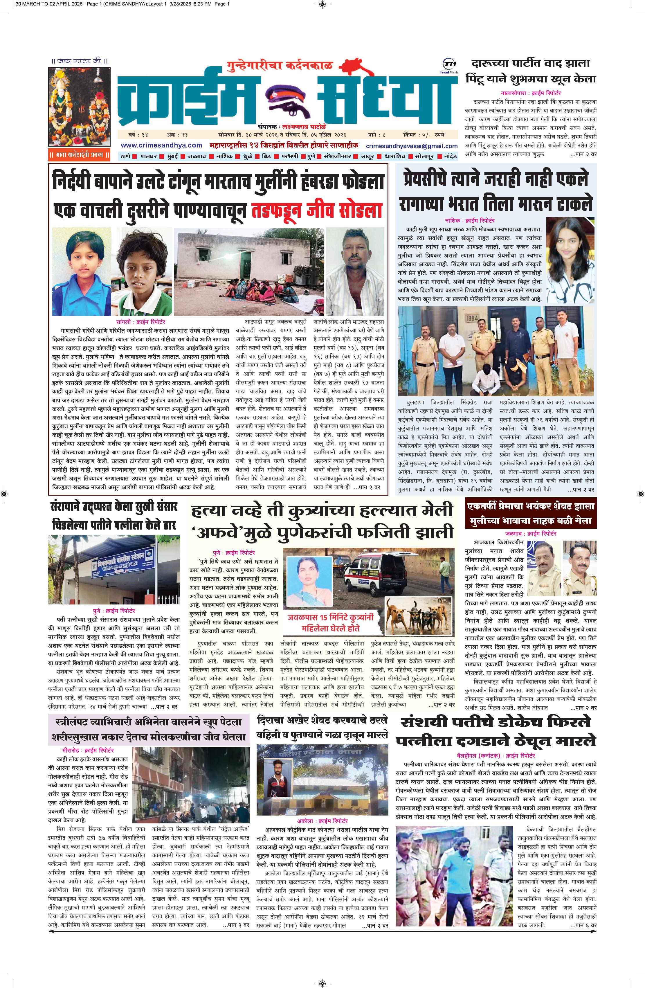 The Crime Sandhya is one of the largest and most trusted sources of independent newsgathering, supplying a steady stream of news to its members, Peoples and commercial customers. it can maintain its single-minded focus on newsgathering and its commitment to the highest standards of objective, accurate journalism.