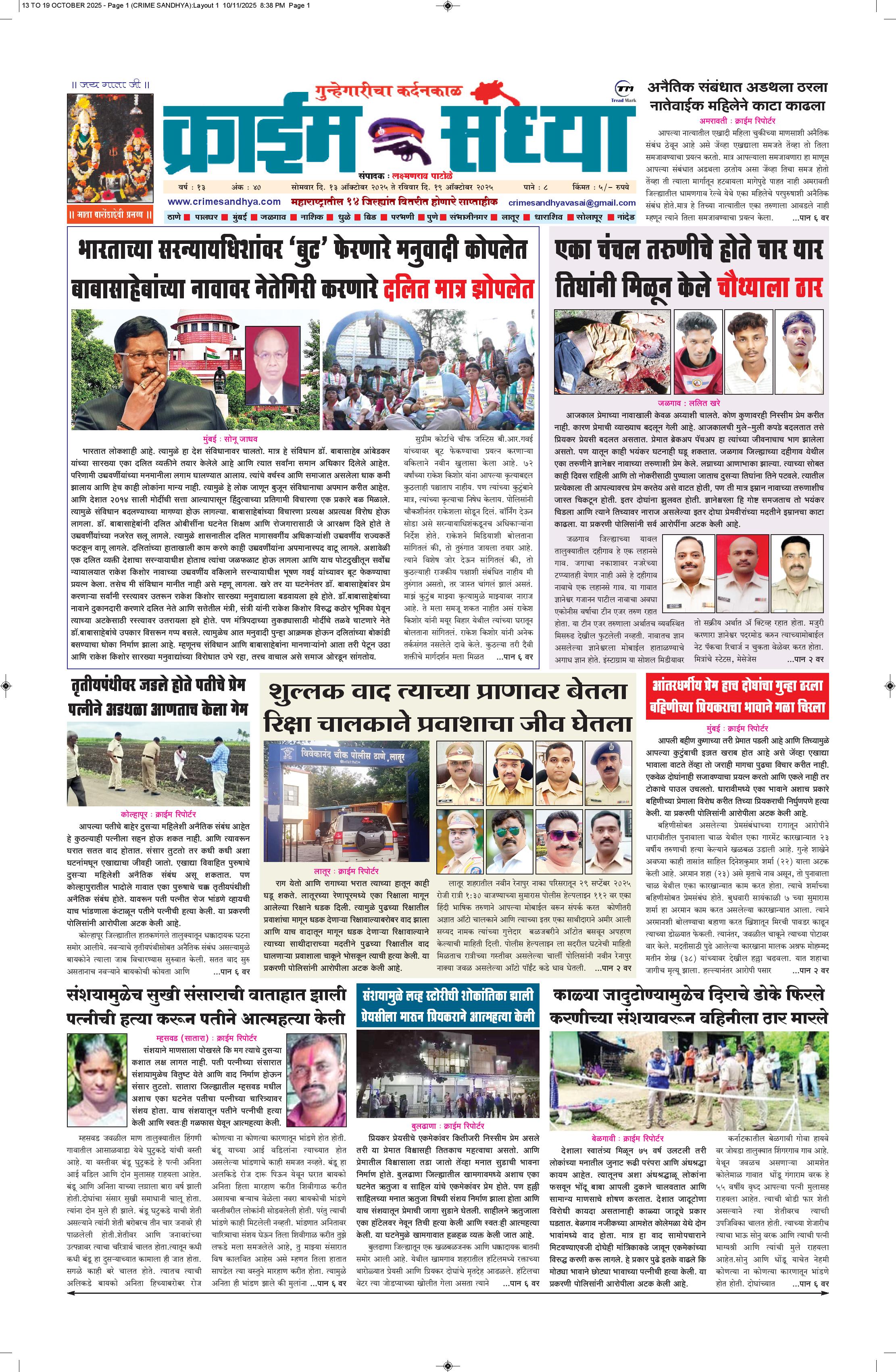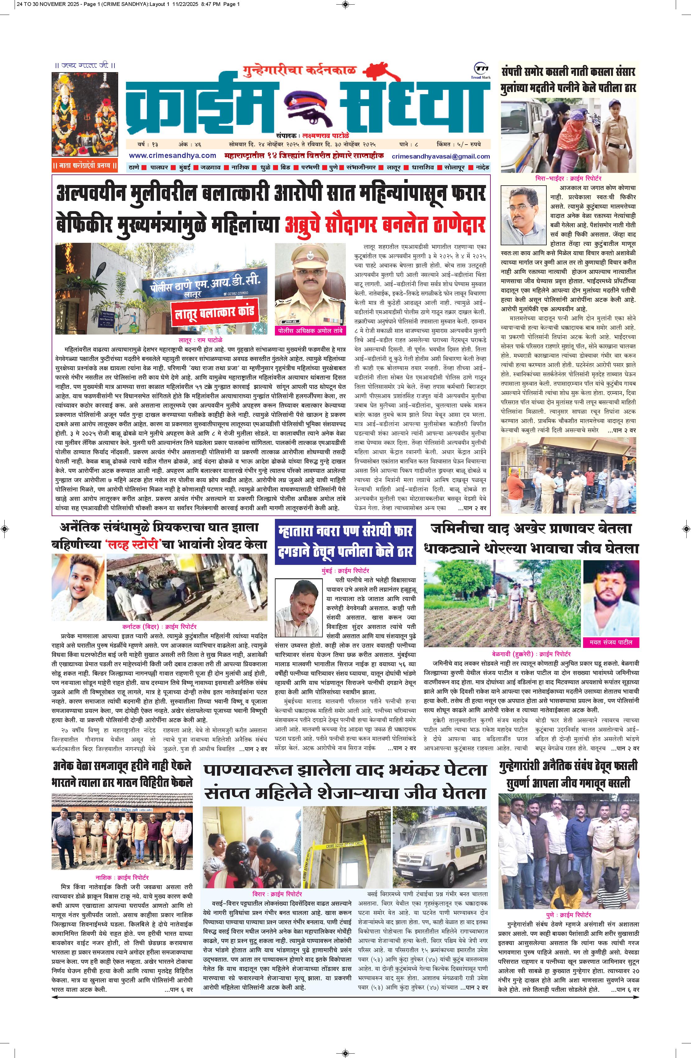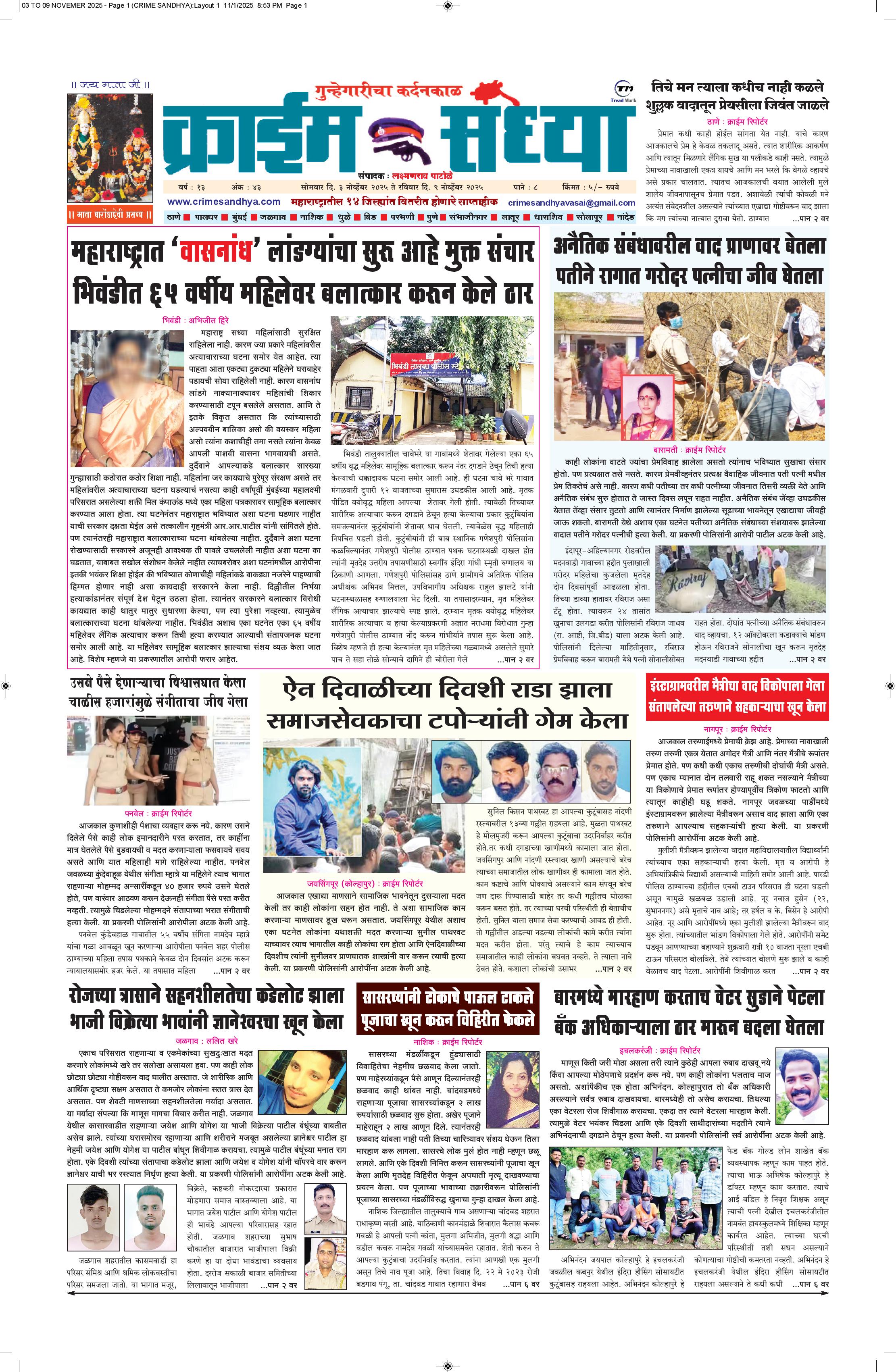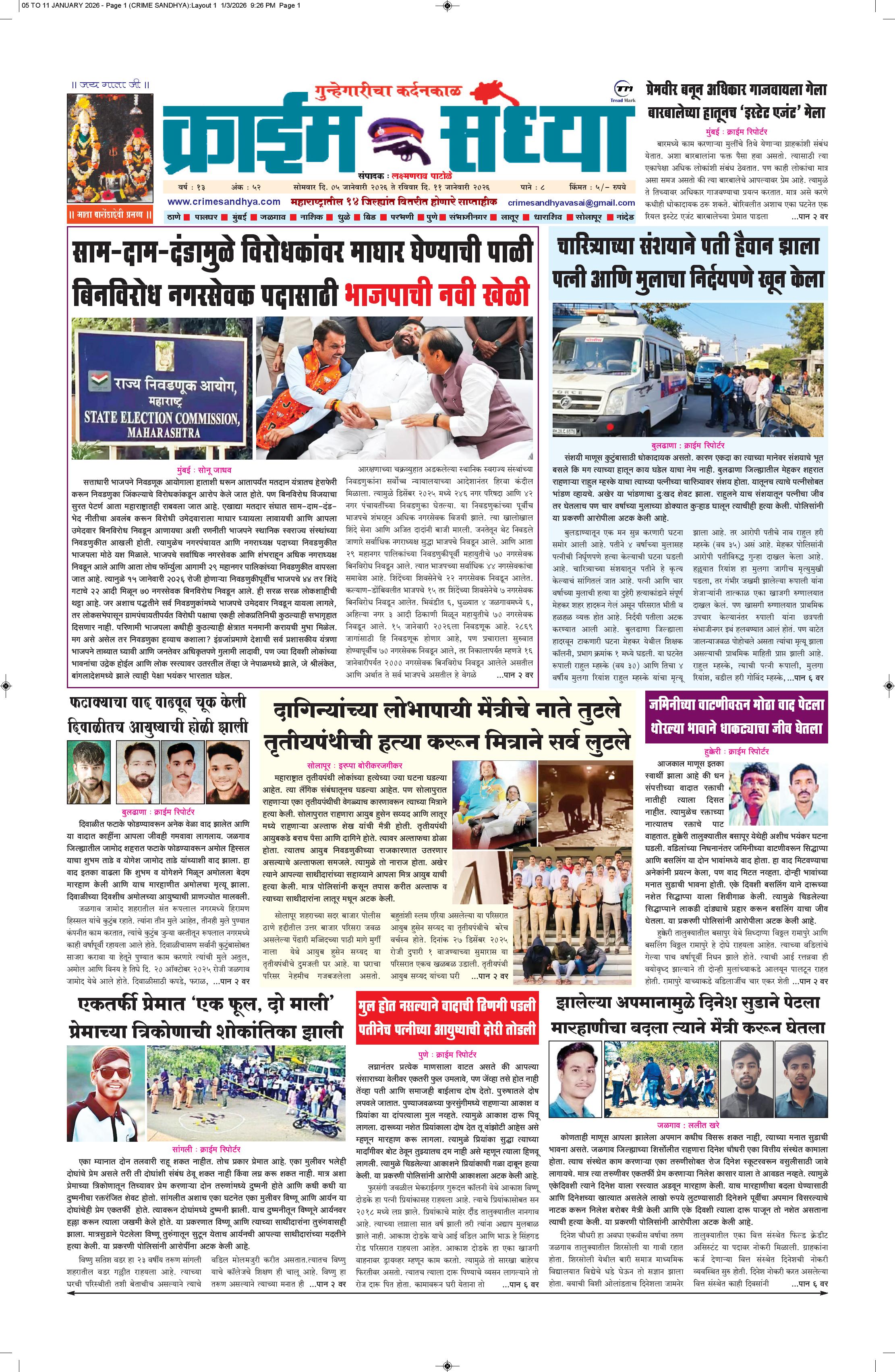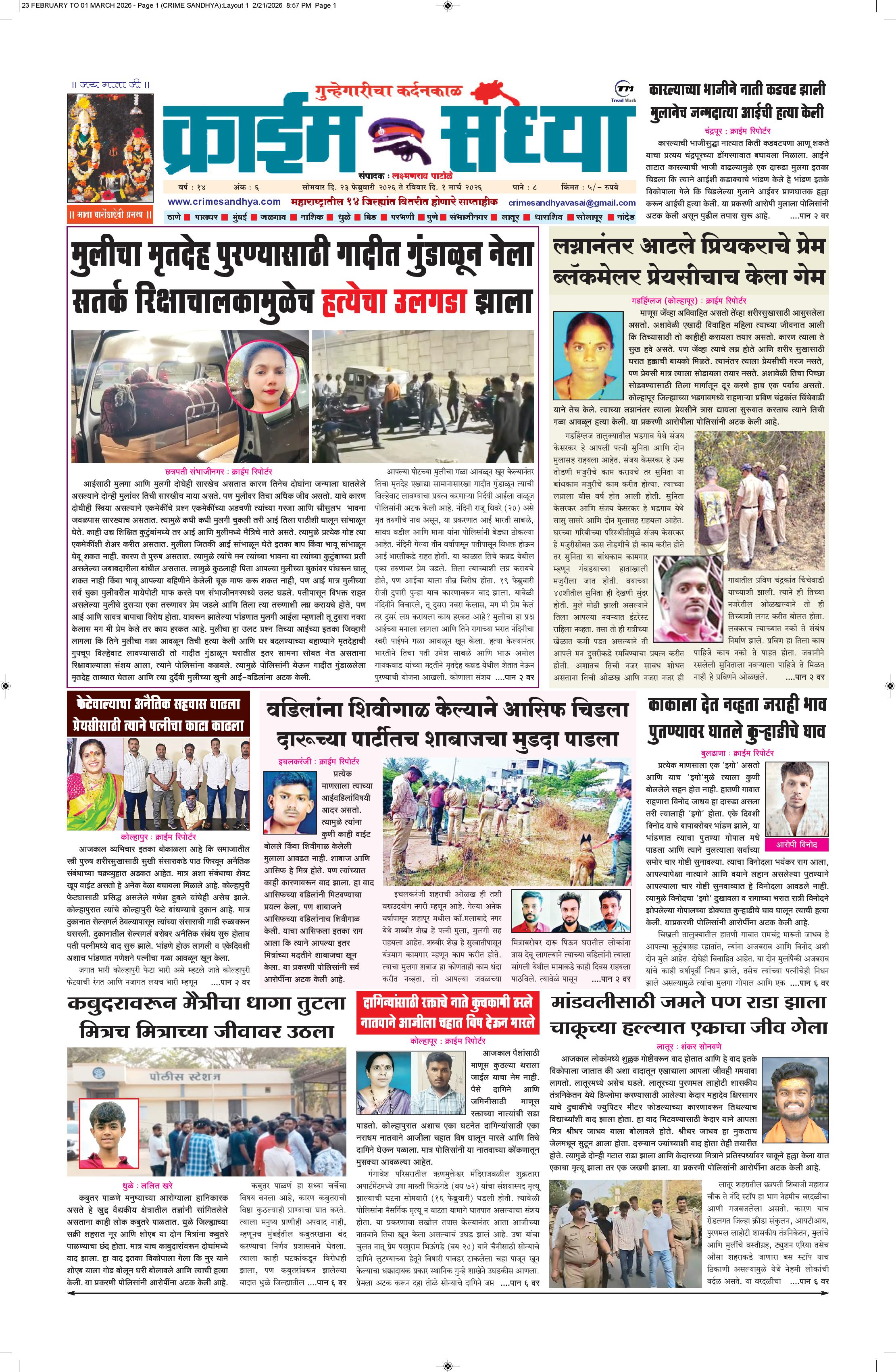 The Crime Sandhya is one of the largest and most trusted sources of independent newsgathering, supplying a steady stream of news to its members, Peoples and commercial customers. it can maintain its single-minded focus on newsgathering and its commitment to the highest standards of objective, accurate journalism.